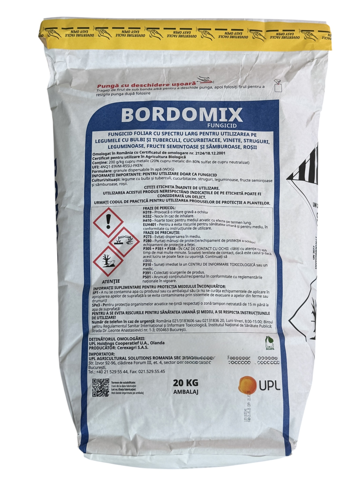 BORDOMIX este un fungicid de contact cu actiune preventiva si curativa, bazat pe sulfat de cupru. Acesta este utilizat in combaterea bolilor specifice la vita de vie, pomi fructiferi, legume si alte culturi agricole, avand eficienta ridicata impotriva manei, bacteriozelor, patarii frunzelor si cancerului bacterian.