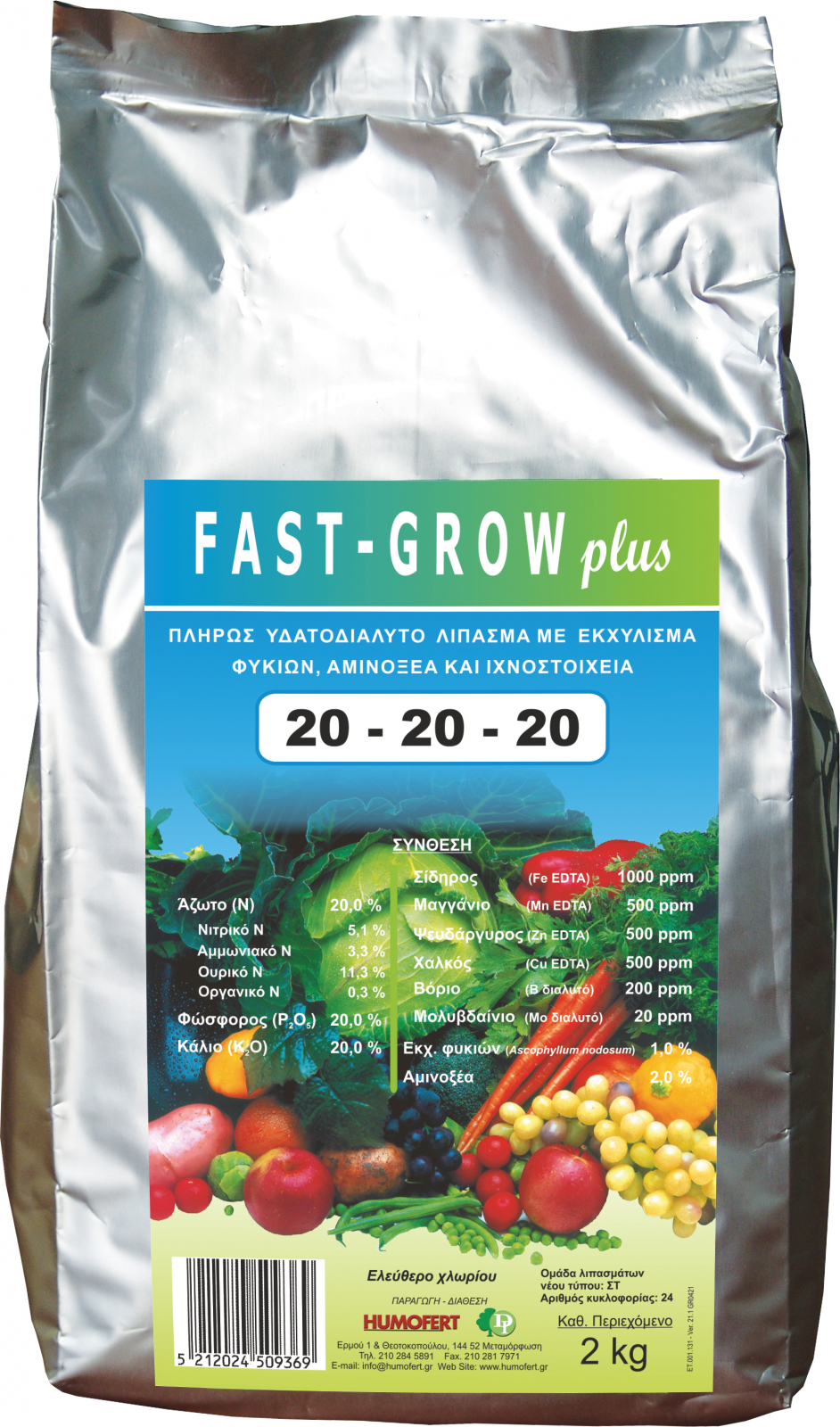 Seria de îngrășăminte FAST GROW plus conține macronutrienți solubili în apă (N, P, K) combinați cu oligoelemente chelate, L-aminoacizi și extract de plante marine Ascophyllum nodosum. Îngrășămintele FAST GROW plus sunt fabricate din materii prime de înaltă puritate, care nu conțin impurități și metale grele. Când sunt diluate în apă, sunt perfect dizolvate și nu creează sedimente în rezervor. Îngrășămintele FAST-GROW plus sunt disponibile în diverse formulări N-P-K, pentru a acoperi nevoile nutriționale ale tuturor culturilor și pentru a oferi cultivatorului posibilitatea de a alege cel mai potrivit îngrășământ pentru cultura sa.